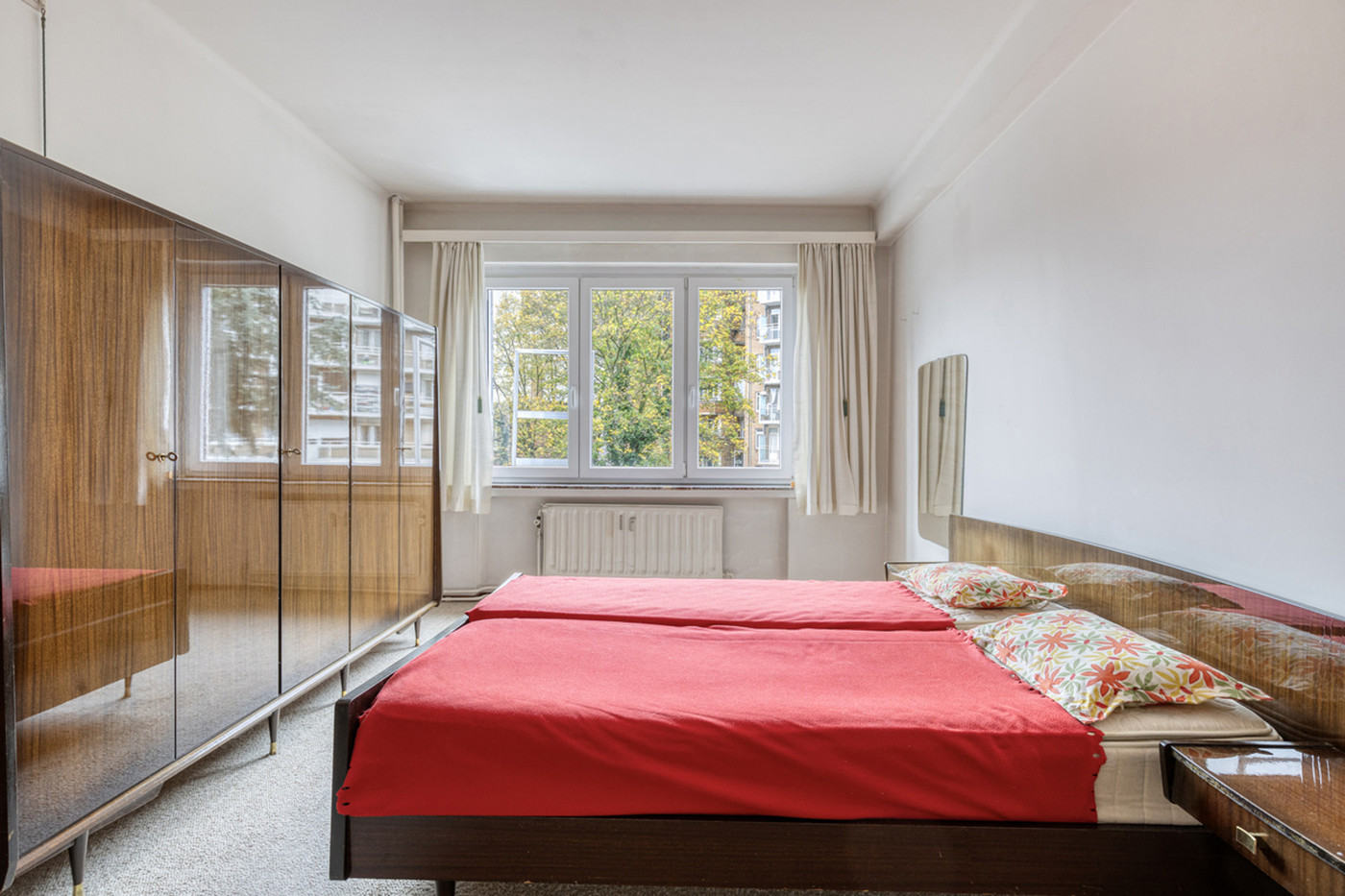Gunstig gelegen appartement van ca 100m² op de 2 de verdieping met lift, 2 grote slaapkamers, ondergrondse autostaanplaats en kelderberging.